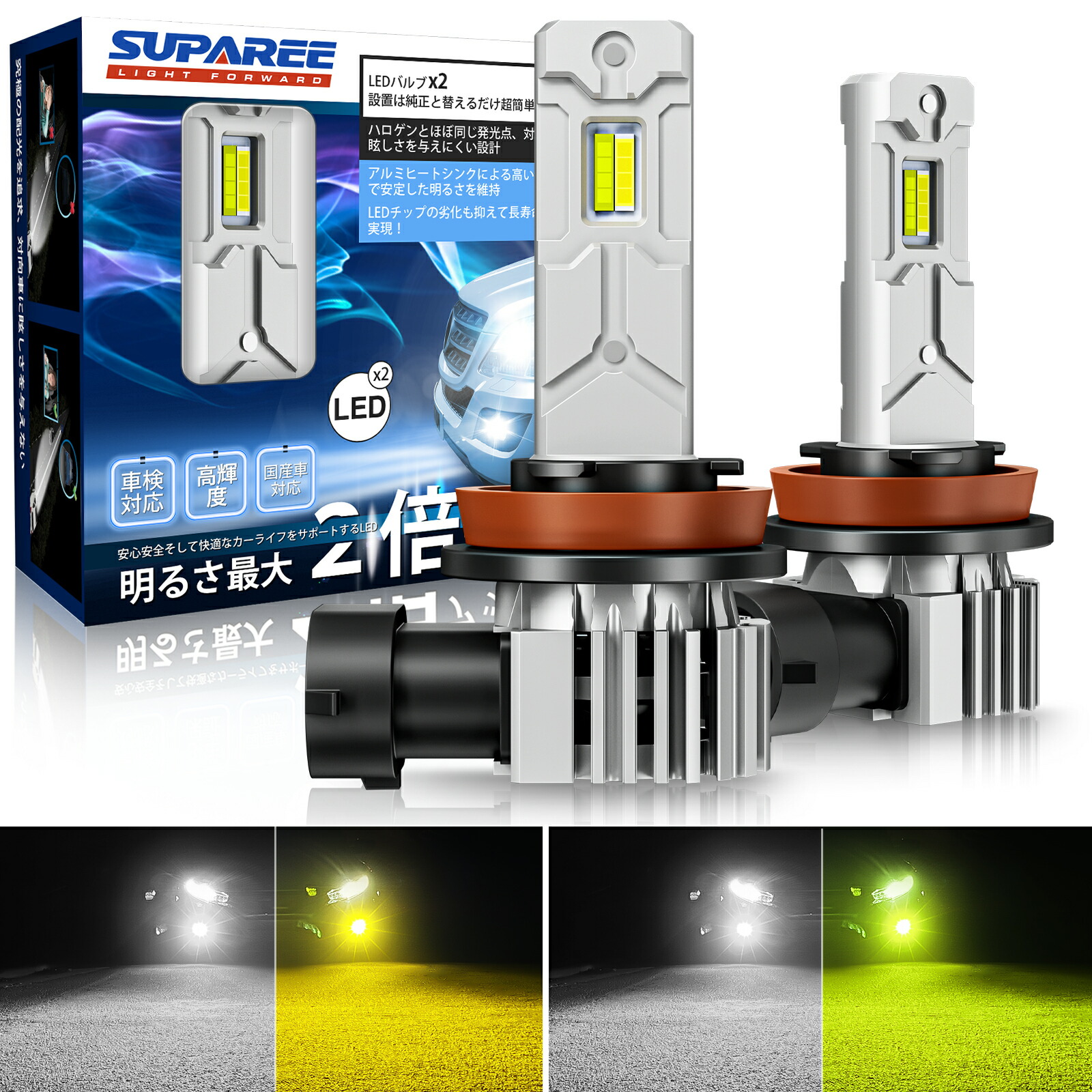 【楽天市場】ブラックフライデー限定★400円OFFあり【最新超人気フォグランプ】 SUPAREE LED フォグランプ H8 H11 H16 LED 2色切り替え フォグランプ H8 H11 H16 車検対応 爆光 ホワイト 6500K レモンイエロー 12V-18V 50W 汎用 角度調整 フォグ 車用 H11 H16LEDバルブ 2個セット 1年保証:SUPAREE PRO